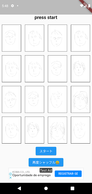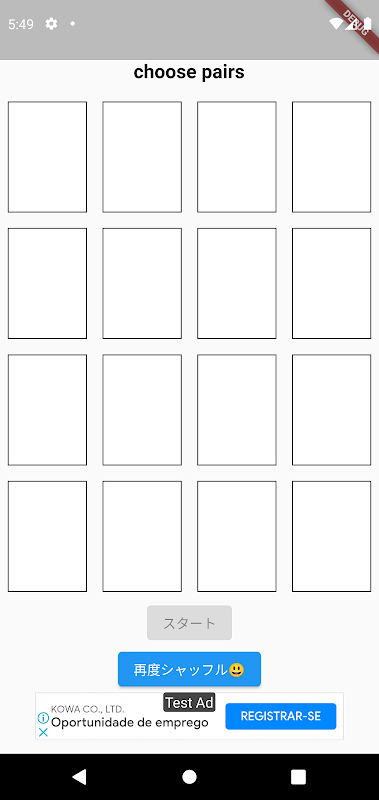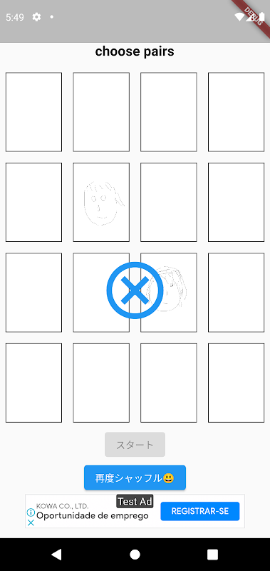 ・ When you press the start button, the card turns to the back, so tap the two cards you think are the same (pair). Try to get the correct answer as much as possible.