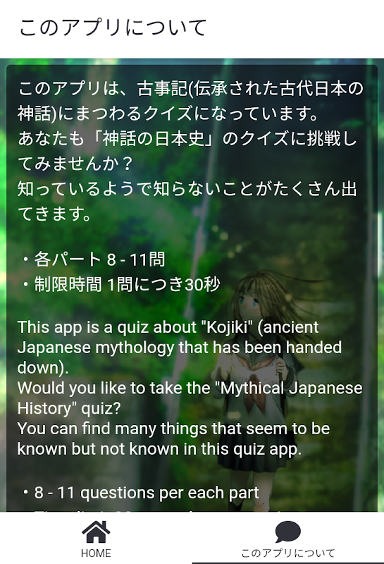 This app is a quiz about Kojiki (ancient Japanese mythology that has been handed down).