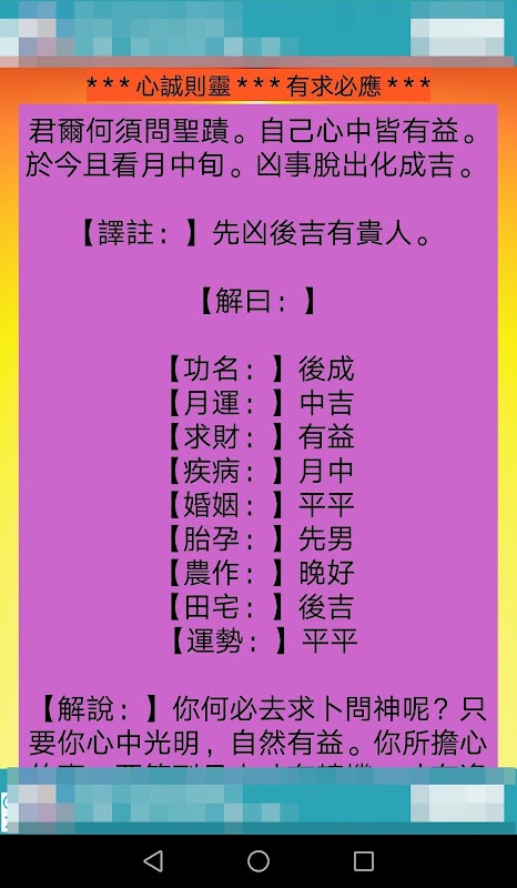 如果你心神恍惚,遇到事情時六神無主,無法好好判斷和下決定,不妨用手機求籤,問問前程,只要心誠則靈,而且有求必應,趨吉避凶。