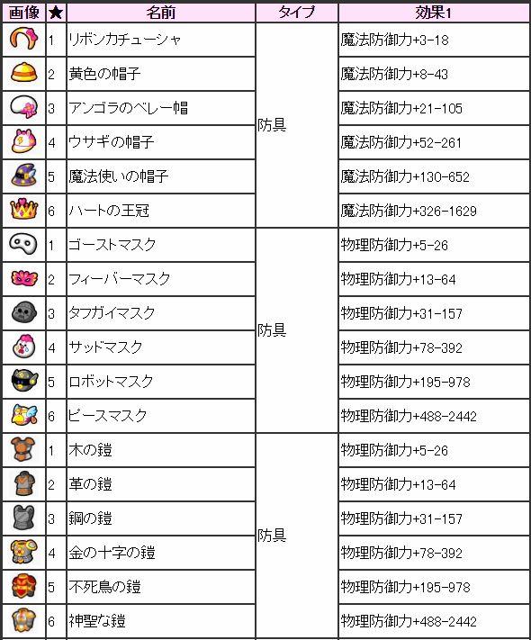 かなりの数値の開きがある装備ではせっかくグレードアップしても★1個分くらい違ってきますので一覧を目安に強い装備にグレードアップを目指しましょう。