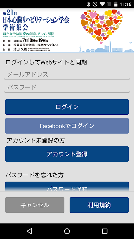 本アプリは、ログインすることでWebサイトとアプリでマイスケジュールを同期して便利にアプリをご利用いただけます。事前にPCで参加する講演を計画して、会期中はアプリを持って講演に参加してください。