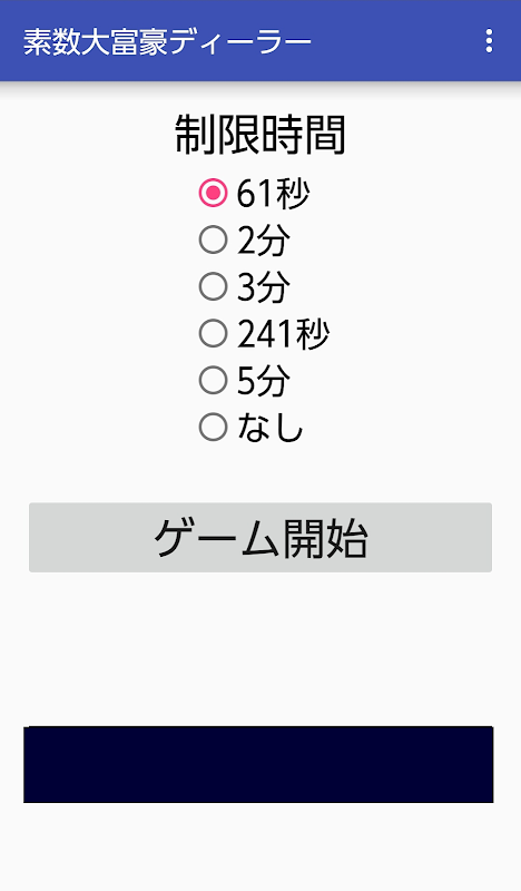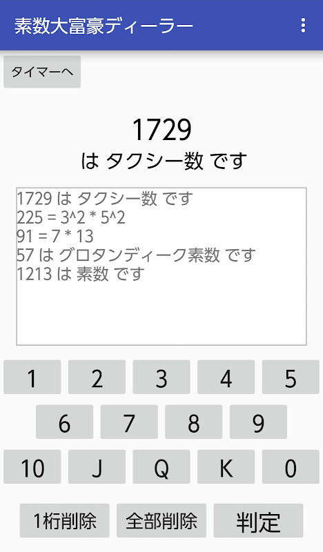 制限時間なしに設定すると、純粋な素数チェッカー・素因数分解アプリとして使えます。