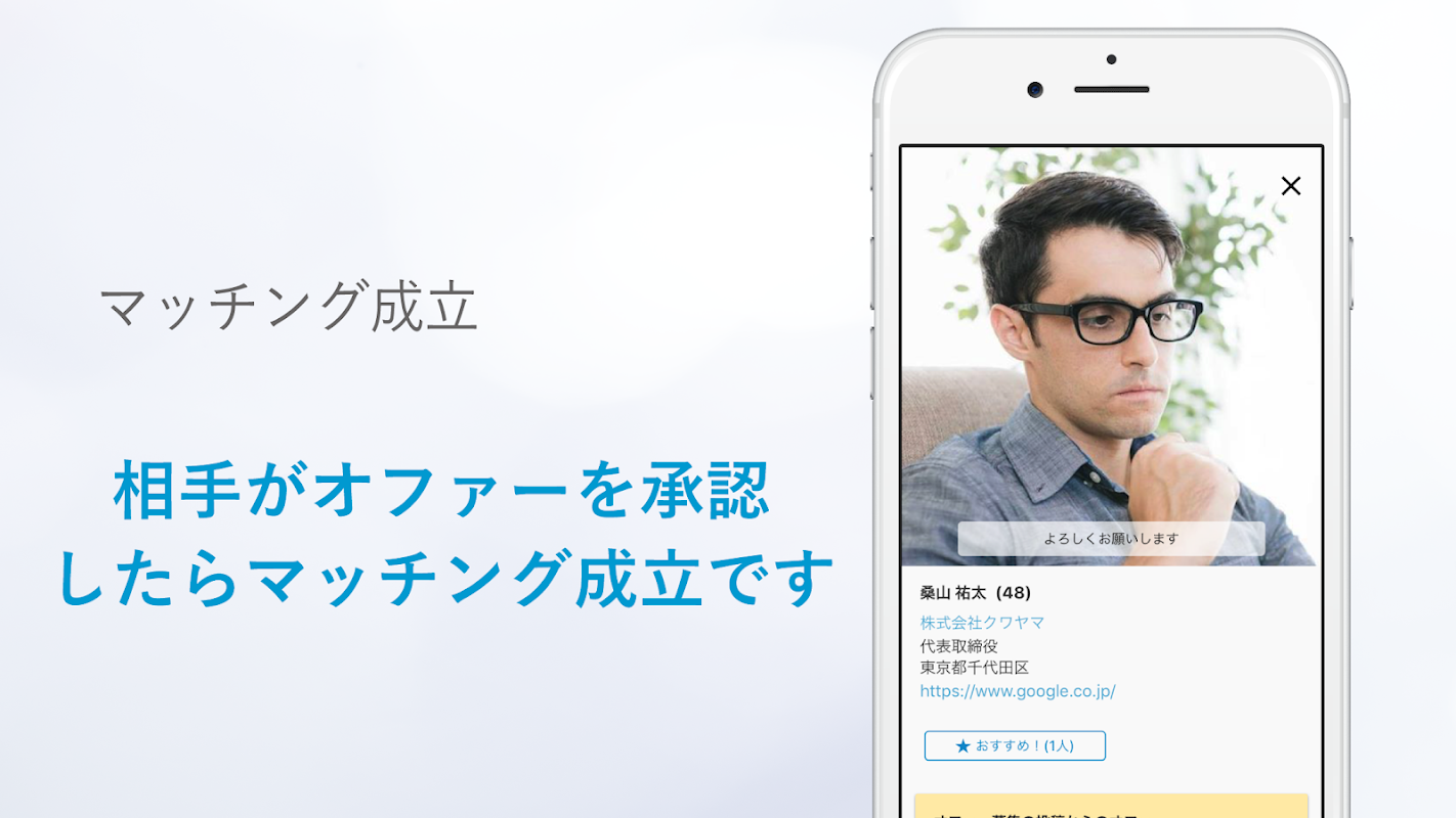 あなたに興味を持った経営者からオファーが届き、あなたはオファーを「マッチング」するか「見送る」かを選択するだけ。