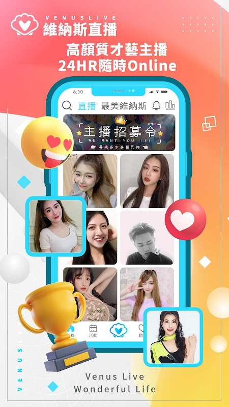 讓網紅與喜歡拍照的妳,透過維納斯分享您的動態能得到最多人的評價與留言,讓更多人看見!全新的社交直播平台能帶來更多的人潮與知名度。