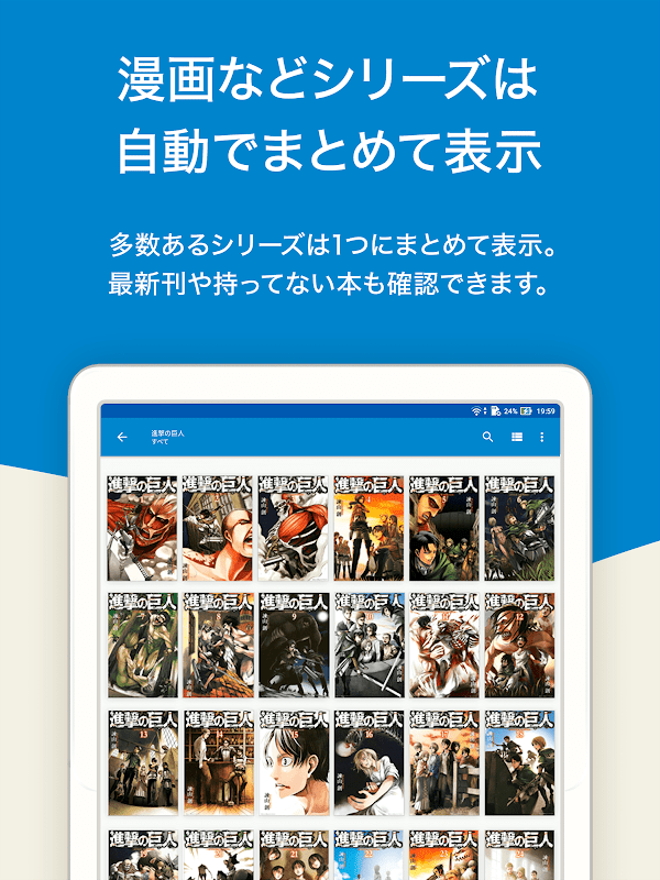 - Series books are automatically grouped together, so it's easy to see your bookshelf even if you have more manga or magazines!