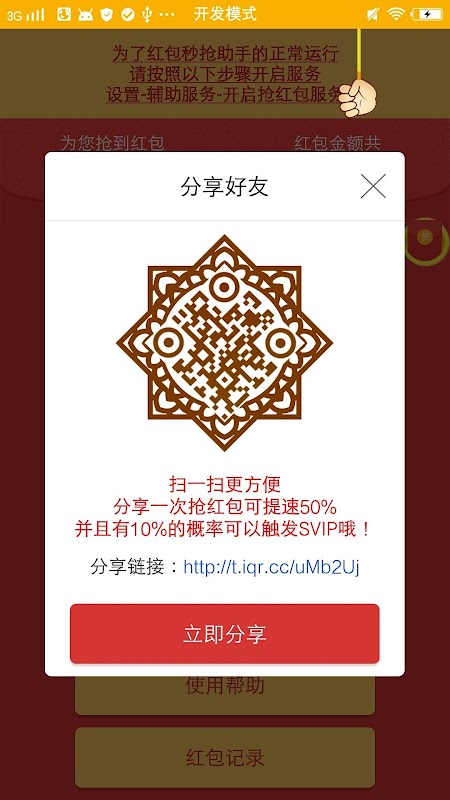 红包秒抢助手软件是一款全自动微信抢红包神器!只需要开启自动抢红包服务,就能自动帮您抢微信红包,简单、安全、快捷,让你的手机不漏过任何一个红包!可实现秒抢红包、见包就抢、为你实现手机在手,红包自动抢,闪电抢红包,天天红包轻松来,好运自然来,轻松实现赚钱的愿望!