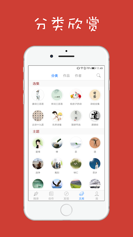 【分类赏析】唐诗三百首、宋词三百首、古诗十九首等精品选集,春夏秋冬、梅桃荷菊、山水日月等写景分类,中国传统节日与二十四节气相关诗词。