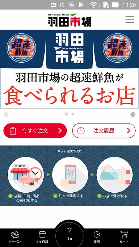 全国の漁港から羽田空港を経由して新鮮で美味しいお魚が365日集まるお店です。超新鮮なお刺身やお寿司のお持帰りをスマホで簡単予約!