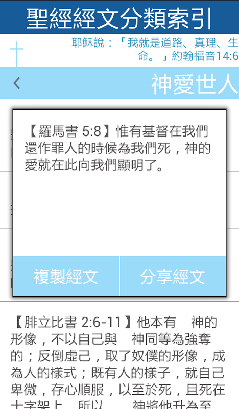 收錄超過300節聖經經文,點選經文即可選擇複製或分享。