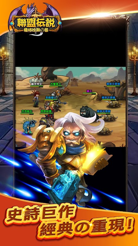 華麗的技能,酷炫的特效,布陣和及技能的組合無極限野外戰鬥玩法,打敗魔獸,解救國王,迎娶公主!Wow!Amazing!