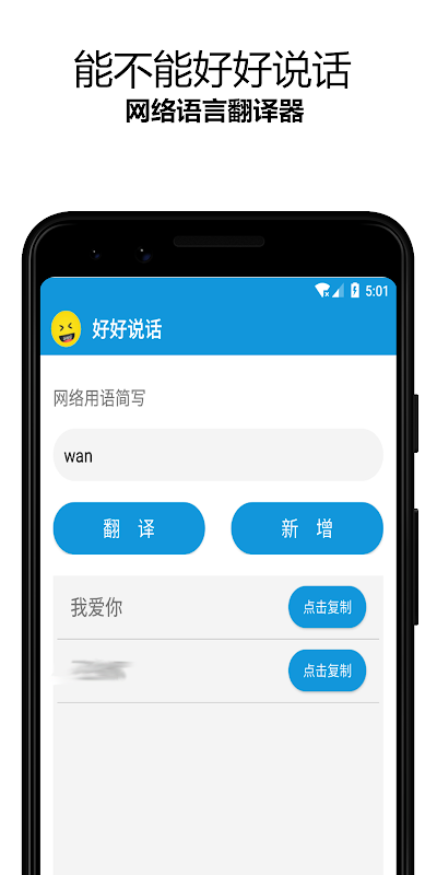 对于70后80后90后来说不在懂得00后的世界了,不知道他们说的什么语言了,对于网络的简写短语也不知其含义,对于此我们开发了这款好好说话-网络语言翻译器。