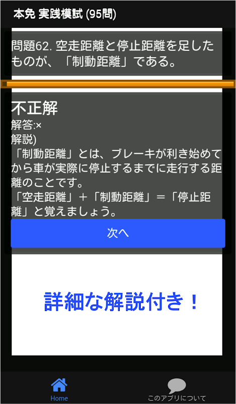 The definitive edition of this license department exam app!Many of the best exams for passing the exam are posted!Also supports road signs and danger prediction illustration problems!With detailed answer commentary!For studying an ordinary driver's license exam!