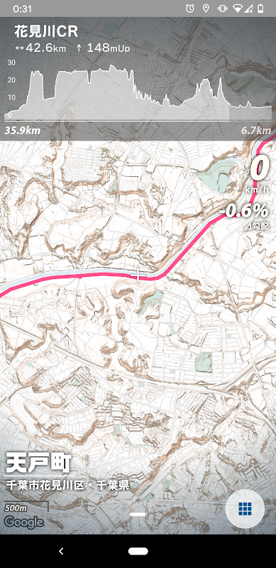 It is mainly a utility tool for bicycles, and you can use functions such as speedometer, track recording, and route creation that allows you to check the altitude graph. You can intuitively see the height difference with the original terrain tile. A little exploratory feeling is produced even for casual movements.
