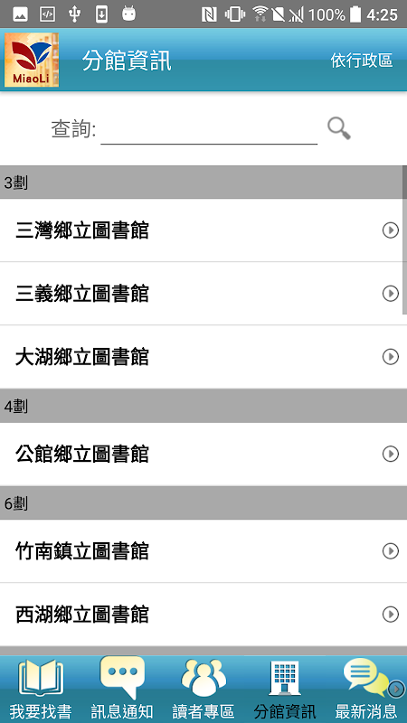 「苗栗縣行動圖書館」為所有縣民提供便利的知識管道,除可查詢苗栗縣公共圖書館豐富的圖書資源外,並且可查詢鄉鎮市圖書館資訊,讓您可更精確掌握知識動向。此外,還提供預約到館通知及預約服務等個人化服務,邀請您親自體驗!