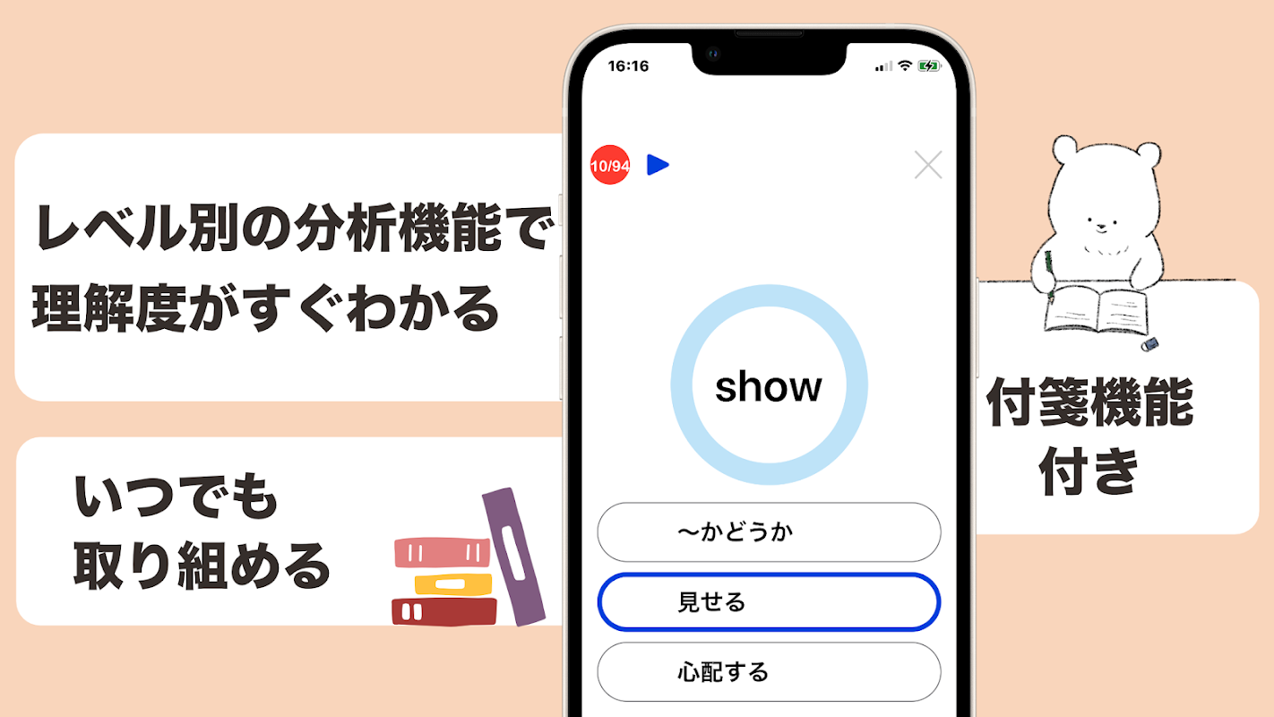 The app is designed to help you study English vocabulary in your spare time. You can keep track of your progress with the list of words you have memorized and analysis graphs. Game mode and listening mode allow you to memorize English vocabulary at a fast pace.