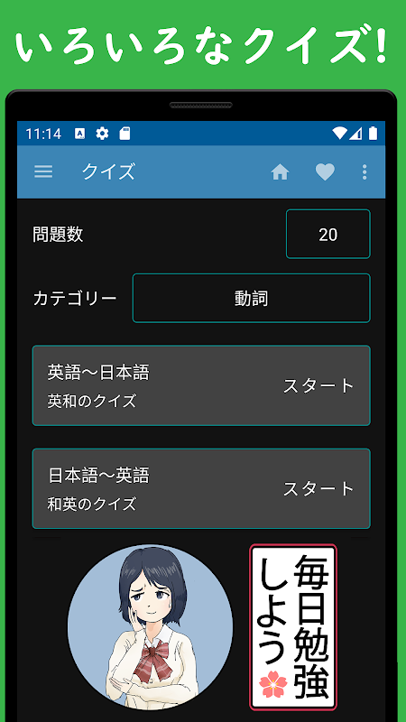 • Pro version: Buttons to view quiz definitions are unlimited per question, providing a better learning experience for those who want to learn English.