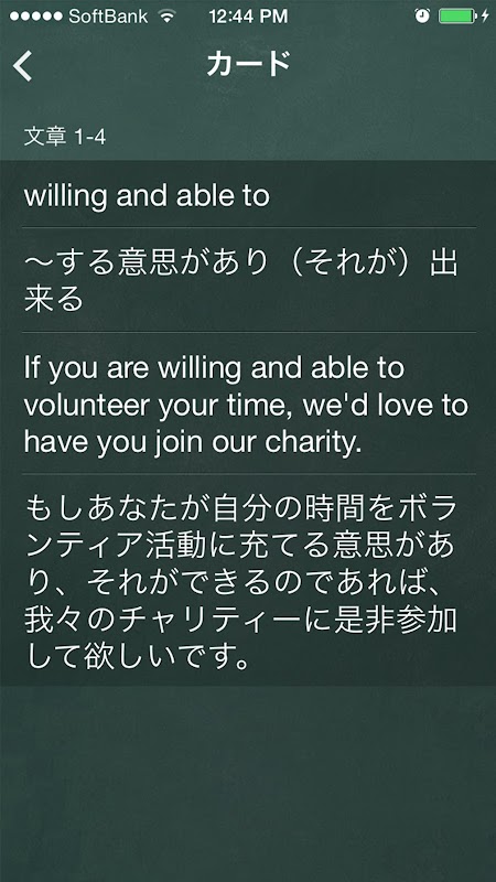 This flash card app, Japanese learners, general English to learn the app, you can learn a phrase that has been used most often in English as a phrase.