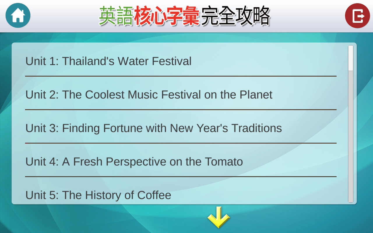 本支app共含35篇主題多元的文章,文章中涵蓋學測歷年常考字彙;依據大考中心「高中英文參考詞彙表」2OOO~45OO 選字,符合升大學考試需求。文中出現的每個重要字彙均輔以例句幫助理解用法。不僅可透過閱讀範文認識單字,亦能由單字理解範文,雙管齊下!無論文章或例句,點選即可聆聽由專業外師錄製的正確發音。
