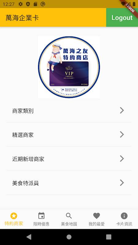 An app used exclusively by VIPs of Wanhai enterprises to quickly use maps to search for nearby special stores and related discounts. Provide a card number to log in to the system, change the password, and display the validity period of the corporate VIP card for authentication by the contract manufacturer.