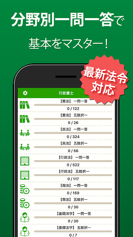 The ultimate administrative scrivener exam question collection app! A whopping 2,468 questions, from basic Q&A to multiple-choice questions by subject area and 10 years of past exam practice questions!