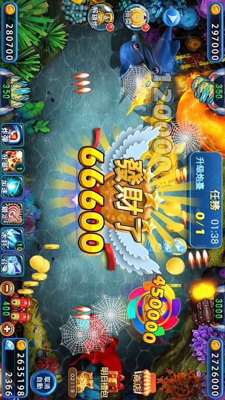 3、超多场景,超多鱼类,劲爆的技能,威力巨大的炸弹,霸气的BOSS,炫酷的海底美景,一网下去,全部落入囊中!