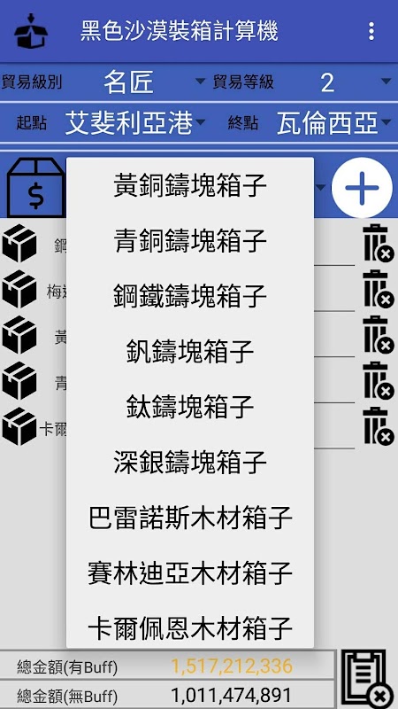 可透過自行設定貿易級別、起點、終點,來取得箱子的總價值,更方便您的資產管理!