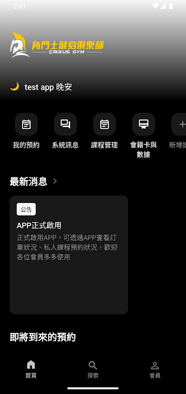 Home page: The clear interface allows you to instantly check recent scheduled courses and check important news released by the venue at any time.