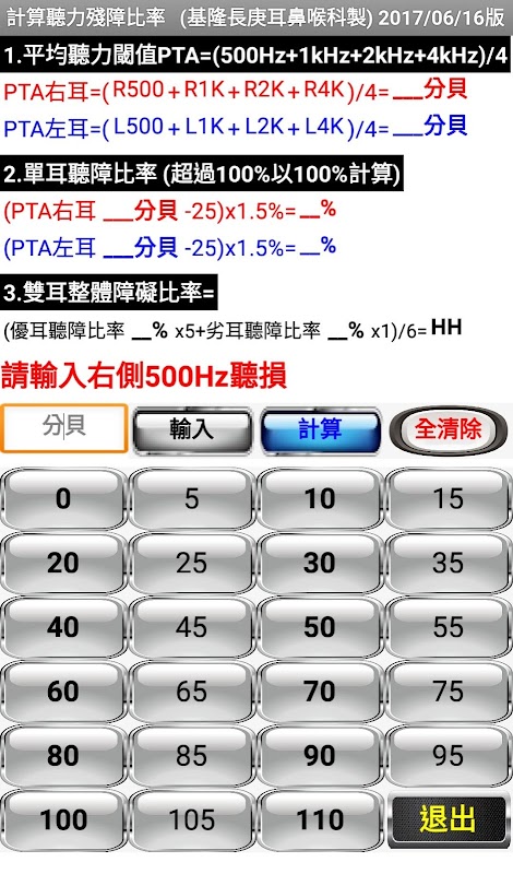 Input binaural hearing threshold, and to calculate the average hearing disorders ratio HH.
