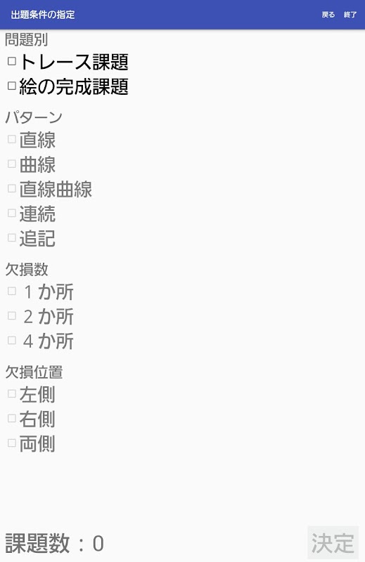 「絵の完成課題」は、使用目的にあわせて、以下のような選択ができます。