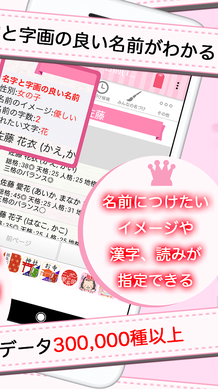 Contains over 300,000 types of naming data! A very popular app that parents and mothers must have! No. 1 in the AppStore genre Official baby naming app (free)