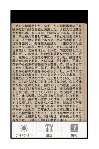 フリードリヒ・フォン・シラーの詩をもとに創作され、太宰治が1940年に発表したによる短編小説「走れメロス」をアプリ化。