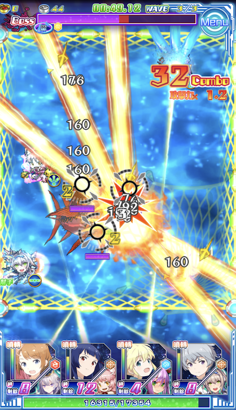 進行戰鬥,累積「噴轉聚能」,發動「噴轉」!轉爆守護神們,發動強力爽感的「神激漣漪」,將宇宙魚一網打盡!轉爆後將有一定機率發動「敲擊」。輕敲裝置後,串聯噴轉發動連續攻擊吧!