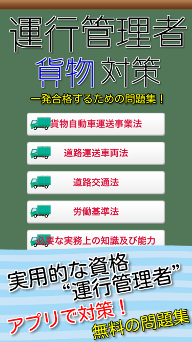 運行管理者 貨物 の問題を解きながら学習するアプリです。