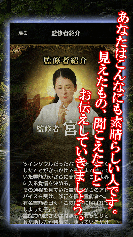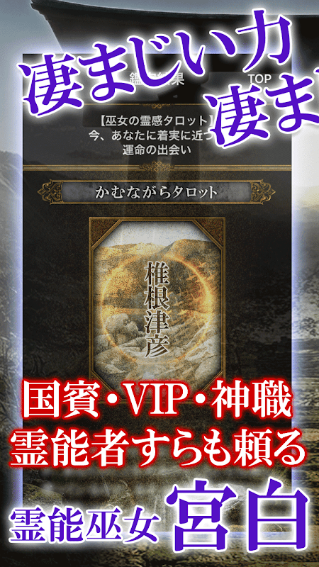 周りが漏らすことを秘密にしてきました。担当者が口説きに口説き続け、やっとアプリにすることができました。宮白先生の凄い鑑定をあなたのお手元にてご体験下さい。