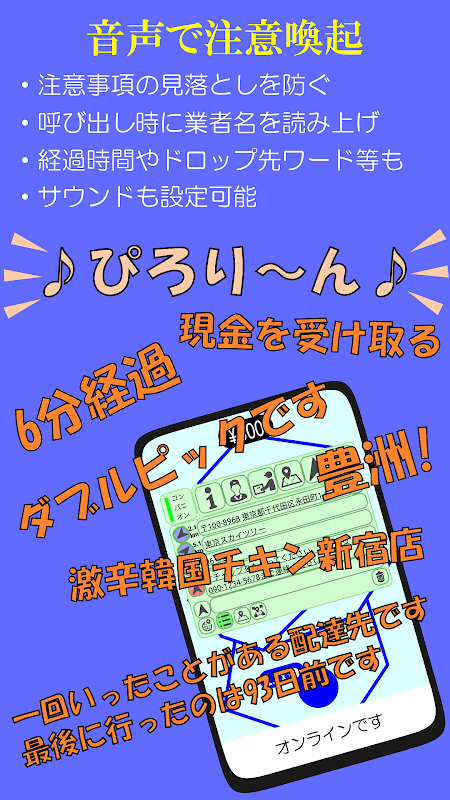 *Important information for the delivery company and the delivery destination is read out loud to alert you.