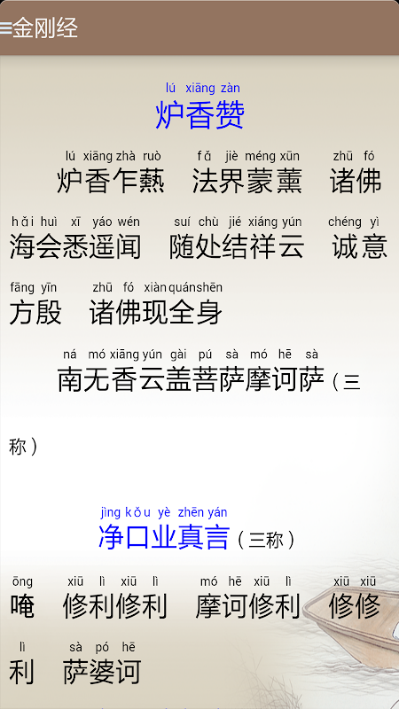 2、采用的金刚经原文是经过报恩堂校勘团队仔细校勘的;