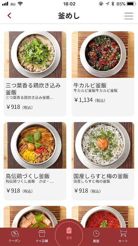 "Toriden Takeout Reservation App" is a service to pre-order the takeout (takeaway) of "Kamameshi and Kushiyaki Toriden". Easily book Toriden dishes on your smartphone!