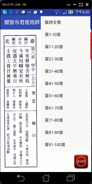 The new version of "divination" can be regarded as the promotion of the power of the main god by each palace and temple. Because it involves advertising, both the upper and lower sides of the lot are drawn with red as the base, which is auspicious. The "story" part has been circulated for a long time because of the autographed poems, and can be seen in all movies and TV shows (such as Lvzhu's story, Sun Bindou's Pangjuan's story, Wang Zhaojun's story...), and the anecdotes are scattered in many books and can be regarded as a reference for unofficial history. Some of the writing is lengthy, so this may be the most word-filled APP ever, but it’s closer to what I think of as an e-book. As I get older, my thoughts on developers may be that too many people think that we are too convenient, and people may not be religious. Nowadays, it is popular to form parties and associations, and there is strength in numbers. Let me decide to add more experiences and stories. A little understanding and ignorance will cause irreparable common deeds in the future. Even if those children just think that history is far away, a foreign land is very friendly. Foreigners may not understand this. There are several areas that I have not opened to the public. I didn’t expect them to take them to Hong Kong. In fact, I don’t have much opinion on Hong Kong, but they have a story about "Tian’s Bauhinia Resurrection". It moved me a lot, so I made it into a text file. The same thing today, if people talk about it in a direction that is beneficial to themselves, it will become superstition instead of history and fact. This is my experience after watching advertisements and communication for so many years. Palaces and temples are in a certain way. By definition, it is still a charitable organization that saves the lower class people. The public knows it but is not confused. Therefore, it has become a true Chinese faith that has endured destruction and endured. It is intangible but exists.