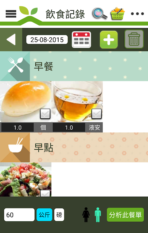 飲食記錄 讓您記錄每日所攝取的食物。