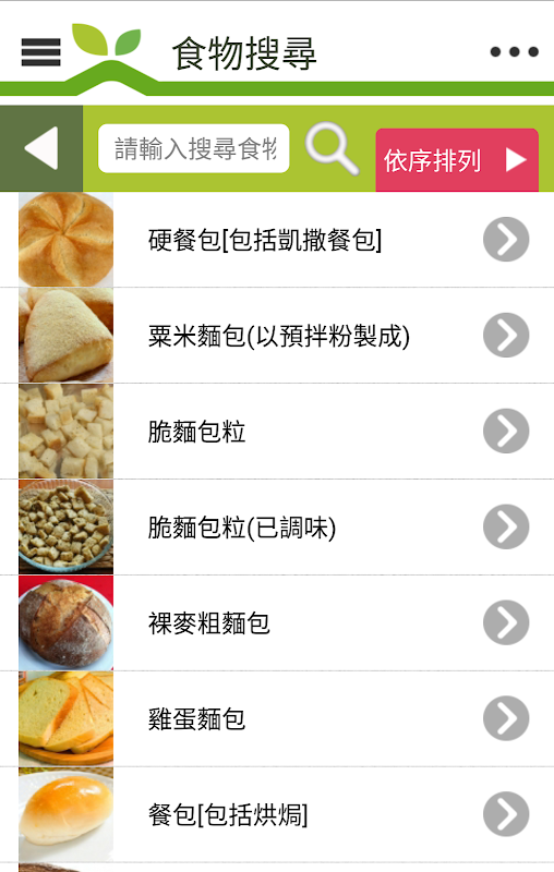 食物搜尋 讓您搜尋曾攝取的食物。