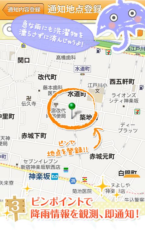 家事をしている時でも、ピンポイントの雨予報(雨速報)をPUSH通知でお届けするので安心です。
