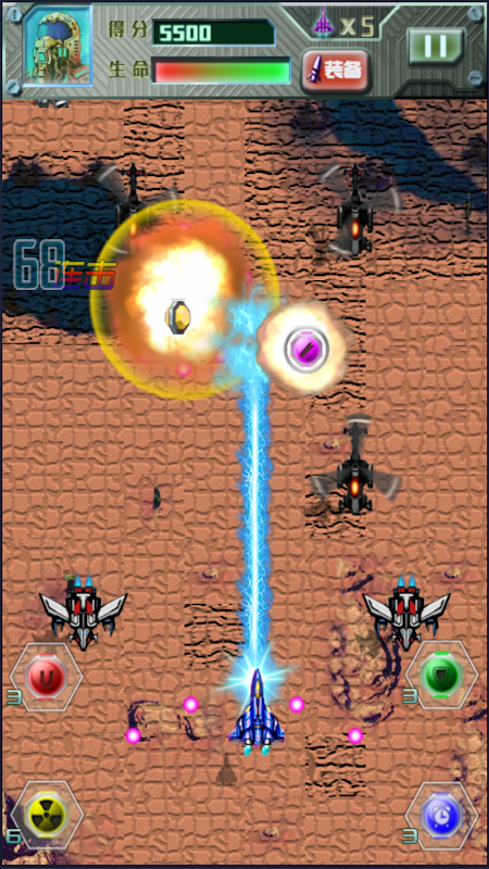 《雷电HD2_最终之战》是一款飞行射击类游戏,是面对独裁者军队的侵袭,我们要击败敌军保卫领土!游戏融入经典战机元素的同时,添加了多种玩法多种角色!同时还加入了装备系统,玩家可以根据自己的喜好进行搭配,使得画面和体验更加劲爆爽快,装备强化、装备进阶等系统玩法等你来探索。多种玩法趣味十足!