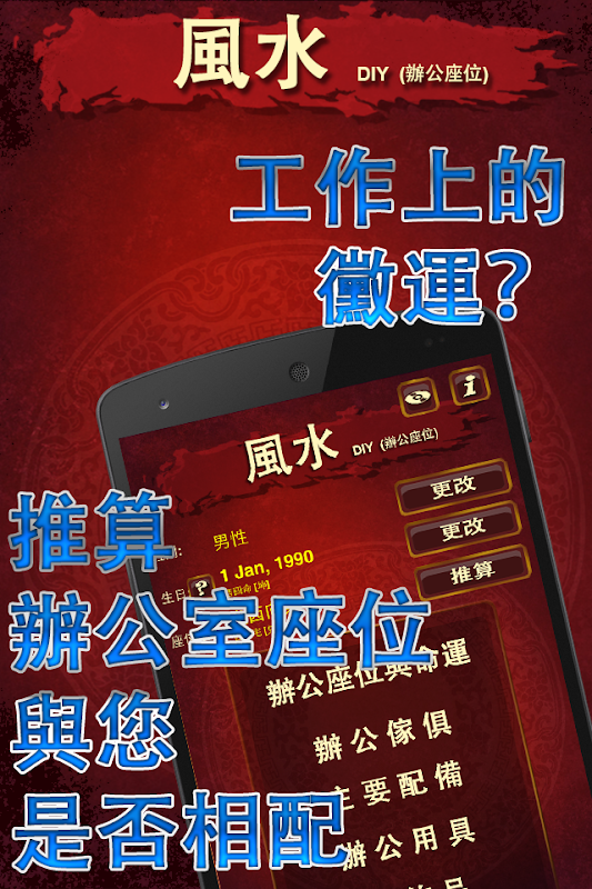 您不需要學習複雜的風水理論,您只需運用風水DIY(辦公座位)的簡單一步一步的指示,您就可推算您辦公室座位的家具與設備風水擺設。