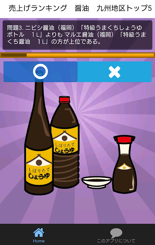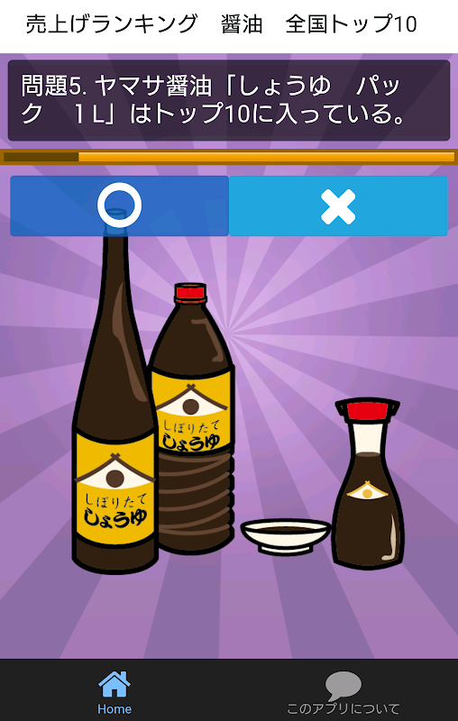 And national and regional sales rankings of soy sauce, soup, is a quiz app that hit the sales rankings of soy sauce-based seasoning, such as grilled meat sauce.
