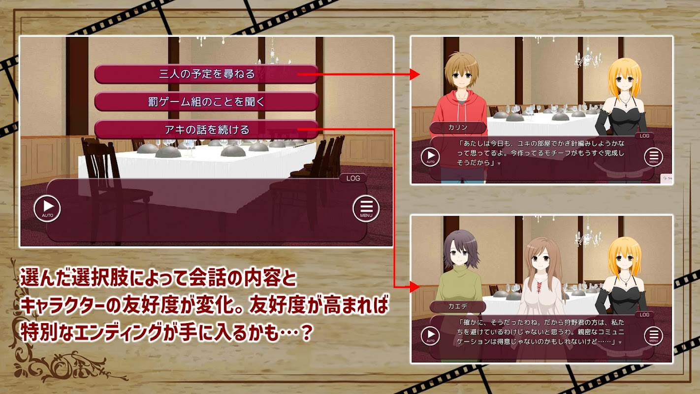 This is a choice-based adventure game where the ending changes depending on the player's actions.