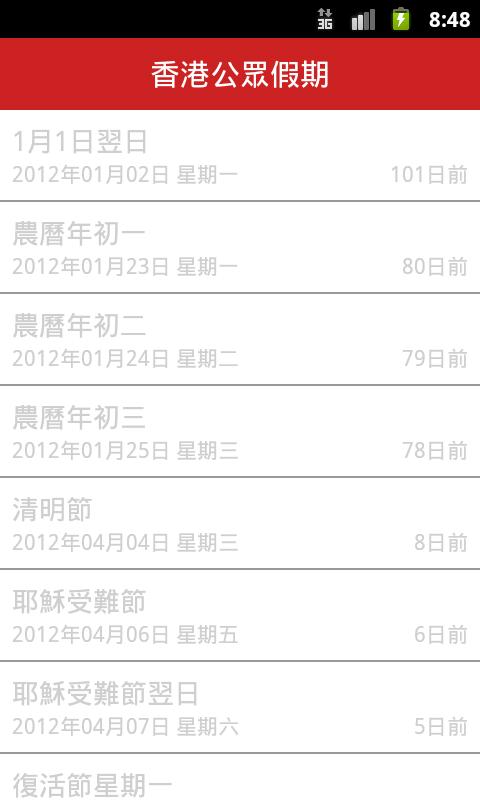 Features: - Always see Hong Kong public holidays - Provided the next day vacation Remaining - Convenient working people plan vacation time