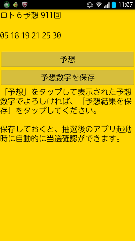 予想数字を保存しておけば、自動的に当選確認を行います。