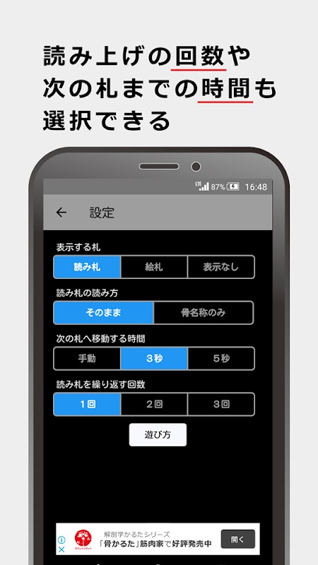 It is an application that reads out the reading card of the anatomy karuta series "bone karuta".