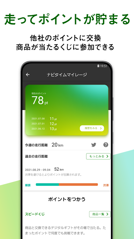 "Navitime Mileage" is a point service that accumulates according to the use of the app.