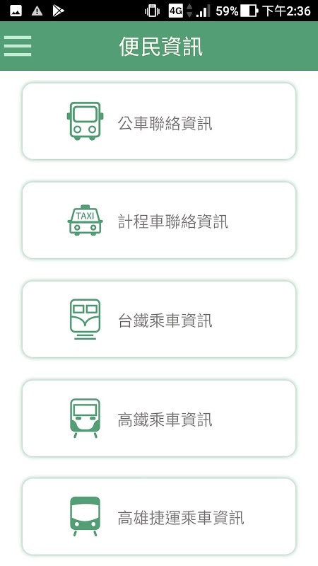 Convenience information: Provides related public transportation inquiry information such as high-speed rail, Taiwan railway, high speed, electronic ticket inquiry.